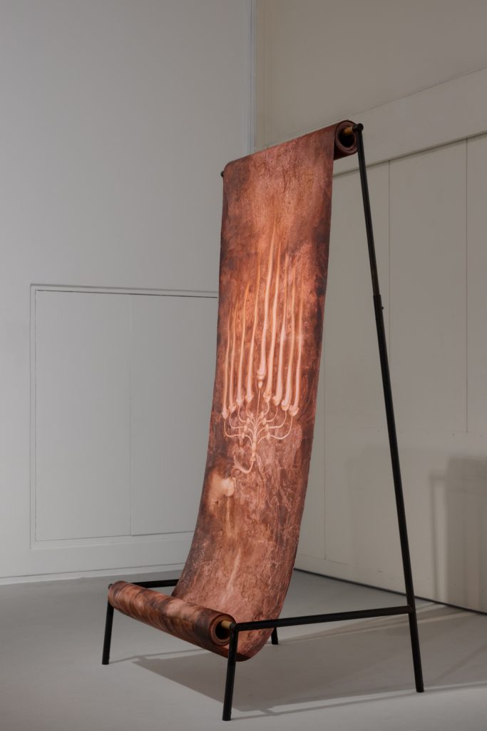 Hanita Ilan, secondo la giuria, si distingue per le sue installazioni di grande formato, in cui la pittura si fonde con la dimensione scultorea e architettonica. L’artista lavora su lunghi teli di tessuto dipinti e sostenuti da strutture in legno, permettendo alle sue opere di esistere come entità tridimensionali. I tessuti, dipinti su entrambi i lati, assumono l’aspetto di rotoli che evocano testi antichi e manoscritti sacri, richiamando il ritmo sequenziale della lettura e l’ordine delle preghiere nella sinagoga. Nelle sue opere, Ilan esplora spesso il rapporto tra rivelazione e occultamento, presenza e scomparsa, utilizzando cancellature, sbavature e stratificazioni. Creare superfici stratificate in cui immagini di paesaggi, oggetti rituali, rovine e figure angeliche emergono e svaniscono. Questo processo conferisce al gesto pittorico una dimensione metafisica, in cui l’atto creativo diventa esperienza spirituale oltre che artistica.