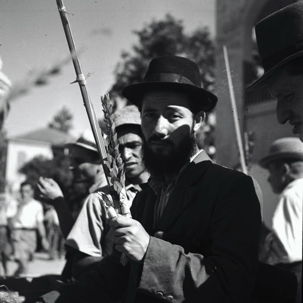 Un altro scatto significativo è quello realizzato due anni dopo, nel 1947, da Avraham Melavsky, che ha immortalato la celebrazione della “Bandiera di Gerusalemme”: una giovane ragazza che tiene tra le mani un alto lulav durante la cerimonia che si tiene nei giorni intermedi di Sukkot, segnando il culmine di un concorso scolastico nazionale promosso dal KKL-JNF.