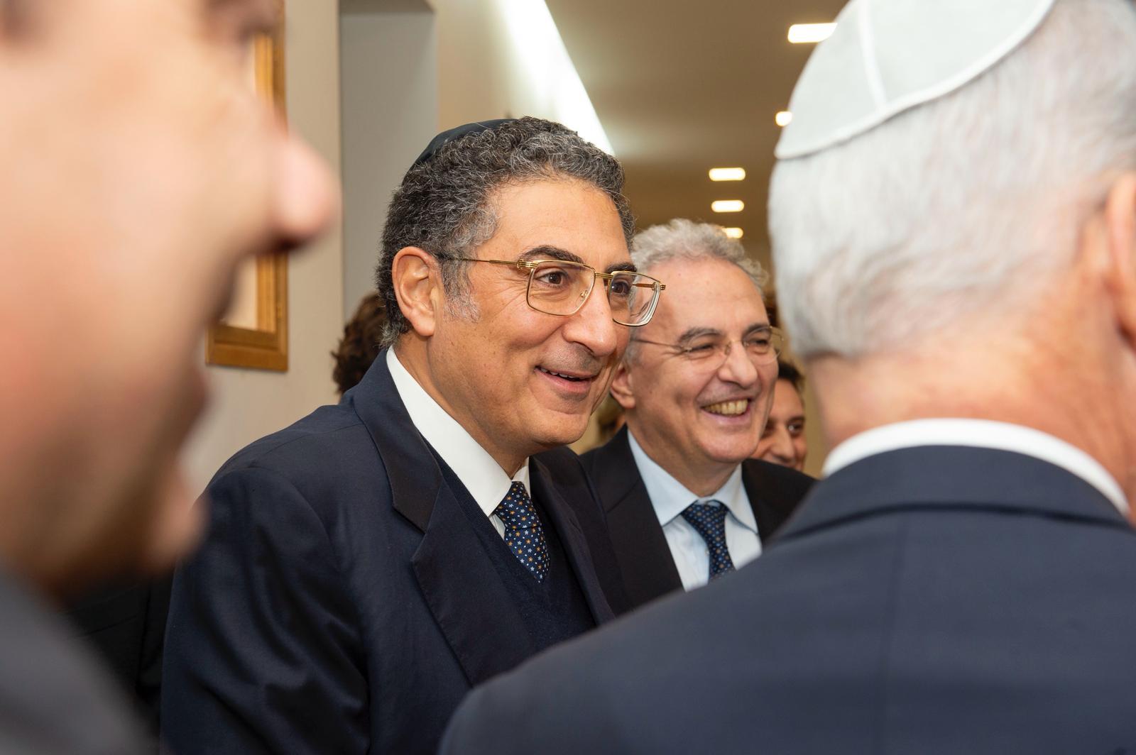 In foto : Da sin: il presidente del Bet Michael, Riccardo Pacifici, al centro il Questore di Roma Roberto Massucci, a destra il Presidente della Cer Victor Fadlun
