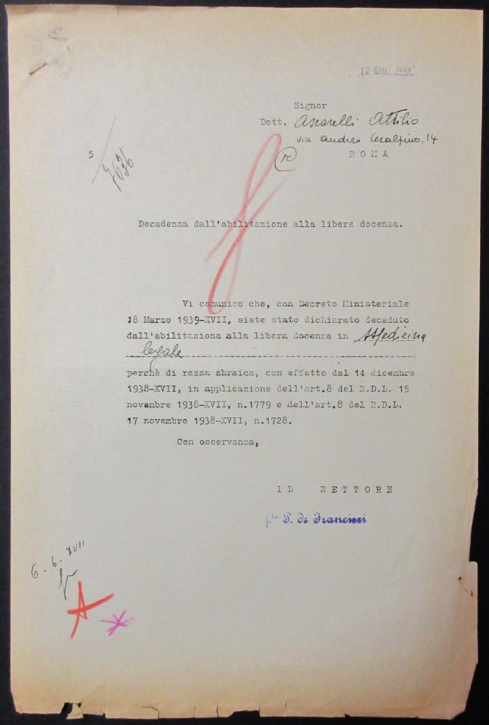 I fascicoli personali degli studenti, oggi al centro di nuove ricerche, aprono un campo di studio fondamentale: attraverso questi documenti è possibile ricostruire biografie e reti famigliari, ridare un nome e una storia a chi è stato ridotto a numero o a pratica burocratica. È anche attraverso questi materiali che emergono le storie delle famiglie delle comunità ebraiche romane, come nel caso di Elio Pavoncello (https://1938-sapienza-leggirazziali.it/Sito/percorso.php?id=122), studente di Lettere espulso dalla Sapienza, ricordato il 16 ottobre del 2024.