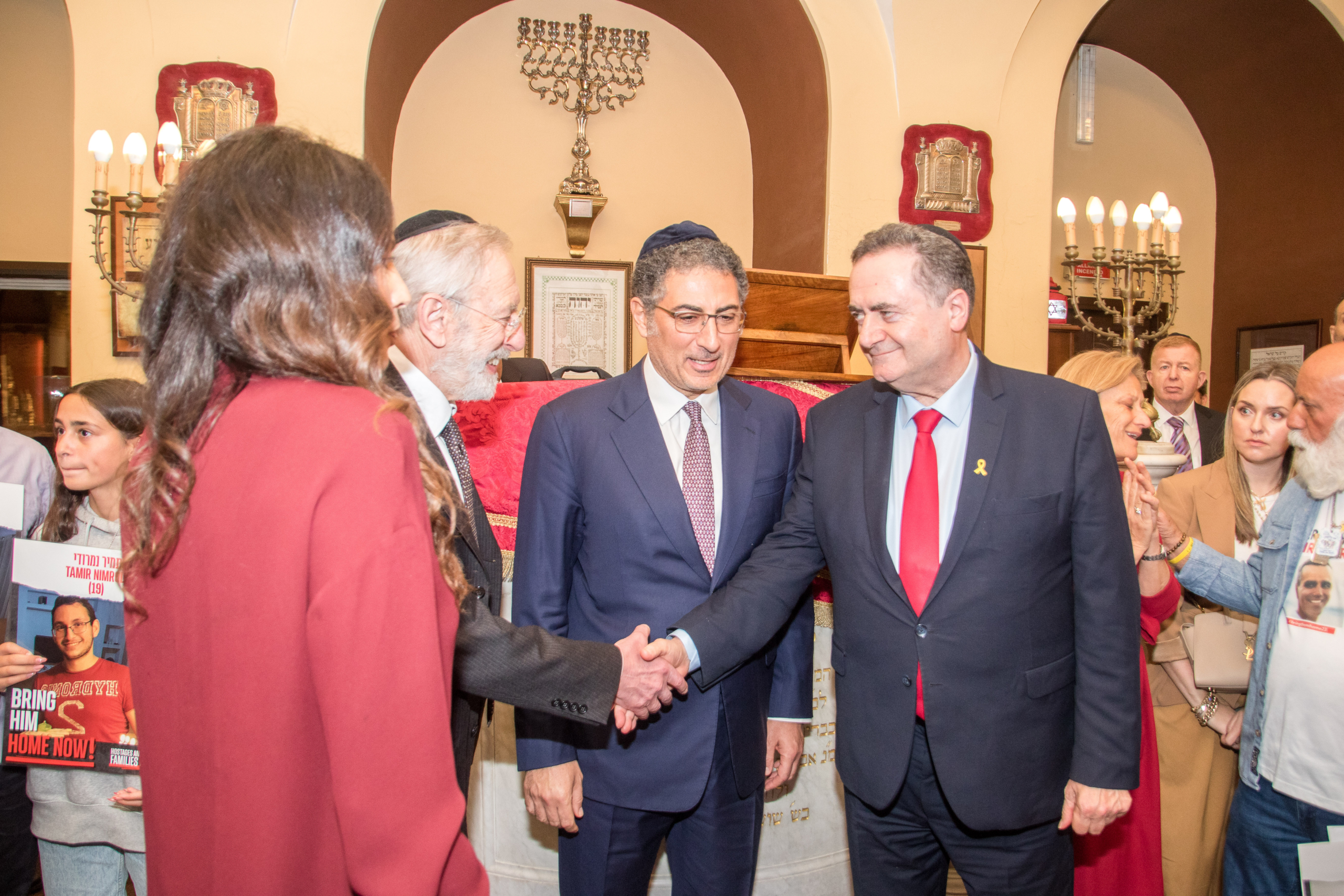 Il Tempio Spagnolo ha ospitato un evento che, per il suo peso specifico, per il momento nel quale è avvenuto e per le motivazioni a causa delle quali è stato possibile, sarà probabilmente ricordato come uno dei punti storicamente più significativi nel rapporto tra il mondo ebraico nazionale e lo Stato d’Israele. Nel giorno del compimento di sei mesi dal 7 ottobre, data del brutale attacco di Hamas e dell’inizio del conseguente conflitto, il ministro degli Affari Esteri israeliano Israel Katz e le famiglie di otto ostaggi al momento nelle mani del movimento terroristico a Gaza sono stati accolti in un incontro privato da un gruppo di rappresentanti della Comunità Ebraica di Roma e dell’ebraismo italiano. La visita non è casuale: Katz è arrivato nella Capitale per incontrare il suo omologo Antonio Tajani, il ministro della Difesa Guido Crosetto e il ministro dell’Interno Matteo Piantedosi.