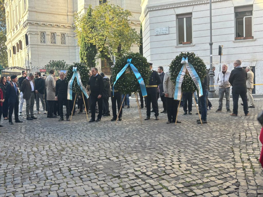 Deposte, questa mattina, nella piazza adiacente al Tempio Maggiore, le corone d’alloro per commemorare l’ottantaduesimo anniversario del rastrellamento degli ebrei di Roma. La cerimonia ha ricordato il 16 ottobre 1943, il “Sabato nero” in cui furono arrestati e deportati ad Auschwitz 1.022 ebrei tra uomini, donne e bambini. Di loro ne sopravvissero sedici, una sola donna, Settimia Spizzichino, nessun bambino.