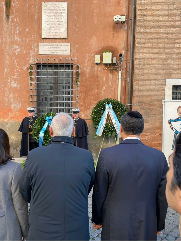 Questa mattina, in occasione del Giorno della Memoria, si è tenuta la cerimonia di deposizione delle corone d’alloro a Largo 16 Ottobre 1943, luogo simbolo della deportazione degli ebrei romani verso i campi di sterminio.
