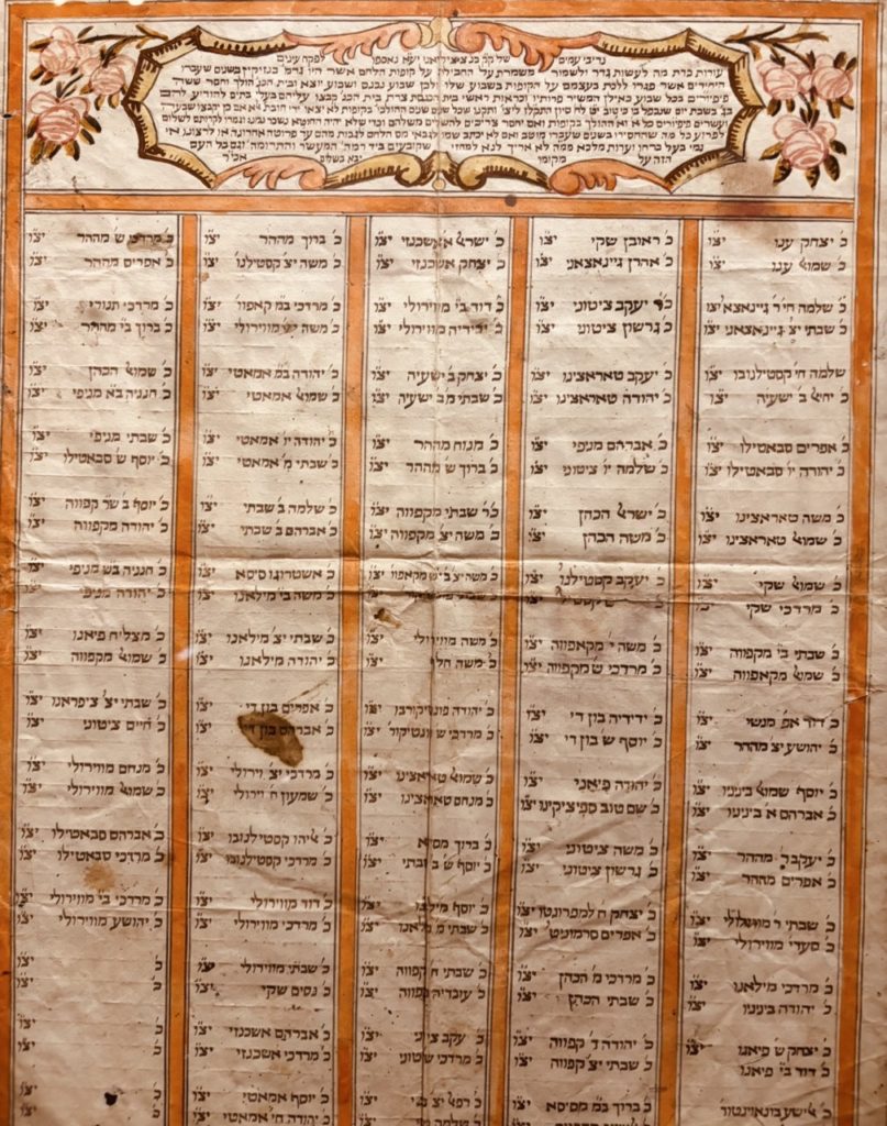 Nel Museo Ebraico di Roma possiamo vedere la antica tabella del 1795 per la raccolta del pane, proveniente dalla Scola Siciliana