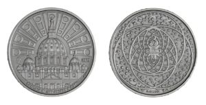 Ogni moneta raffigura al dritto il luogo di culto simbolo di ciascuna fede: la Basilica di San Pietro per il Cristianesimo, il Tempio Maggiore per l’Ebraismo e la Grande Moschea di Roma per l’Islam. Il rovescio, invece, è identico per tutte e richiama il sogno di Abramo attraverso un cielo stellato e tre cerchi che convergono in un punto centrale: Roma. La scelta del tracciato michelangiolesco di Piazza del Campidoglio come elemento grafico aggiunge ulteriore significato, evocando la città come luogo d’incontro tra culture, tradizioni e fedi diverse. Sul bordo compare l’iscrizione “IN ABRAMO TRE FEDI UNA VISIONE”, sintesi dello spirito alla base del progetto.